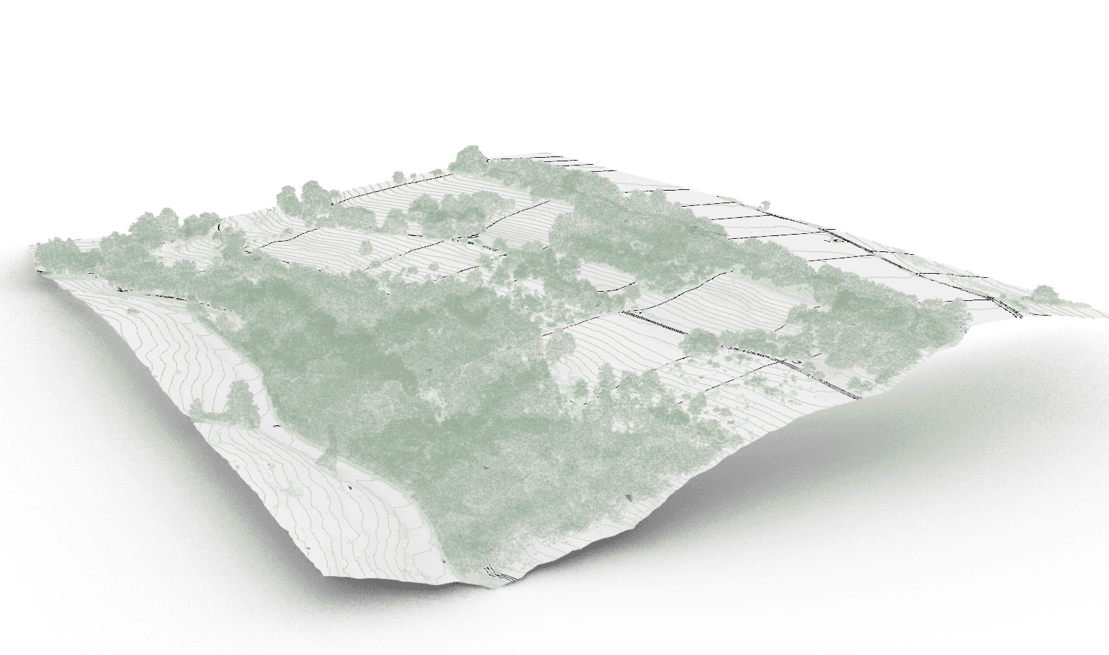 La classification des points de l'IGN permet par ailleurs de conserver l'affichage de la végétation distinct des points de sol pour une bonne gestion graphique et un vrai apport dans la documentation graphique du projet.