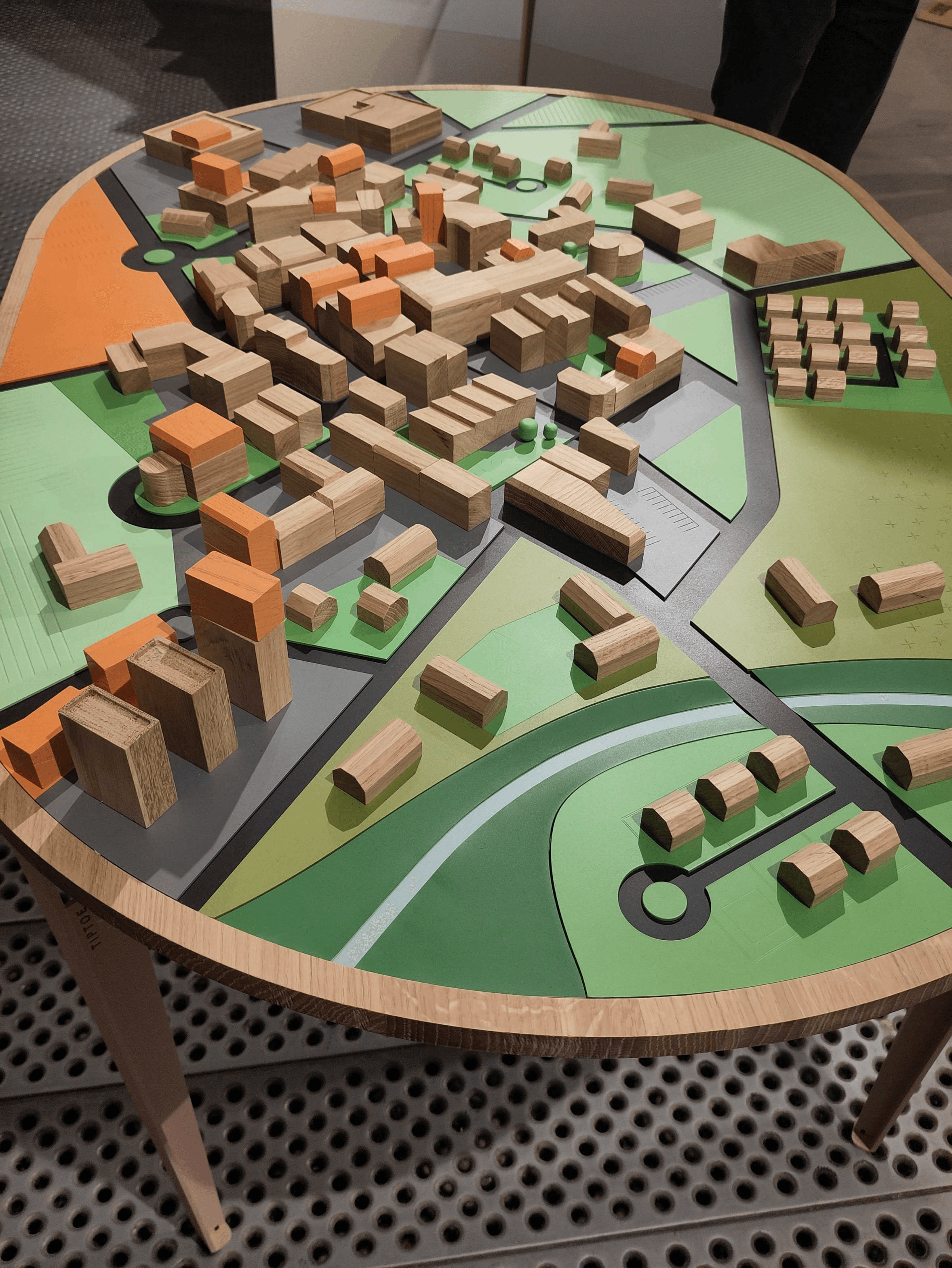 Le clou de l'exposition réside dans une installation low-tech, qui invite les curieux à compléter une maquette de ville pour augmenter le nombre d'habitants tout en sauvegardant ses espaces naturels. On se prête vite au jeu et l'installation un peu enfantine devient un casse-tête et une vraie source de jubilation lorsqu'on trouve, ici une dent creuse, là un toit sur lequel faire une extension.