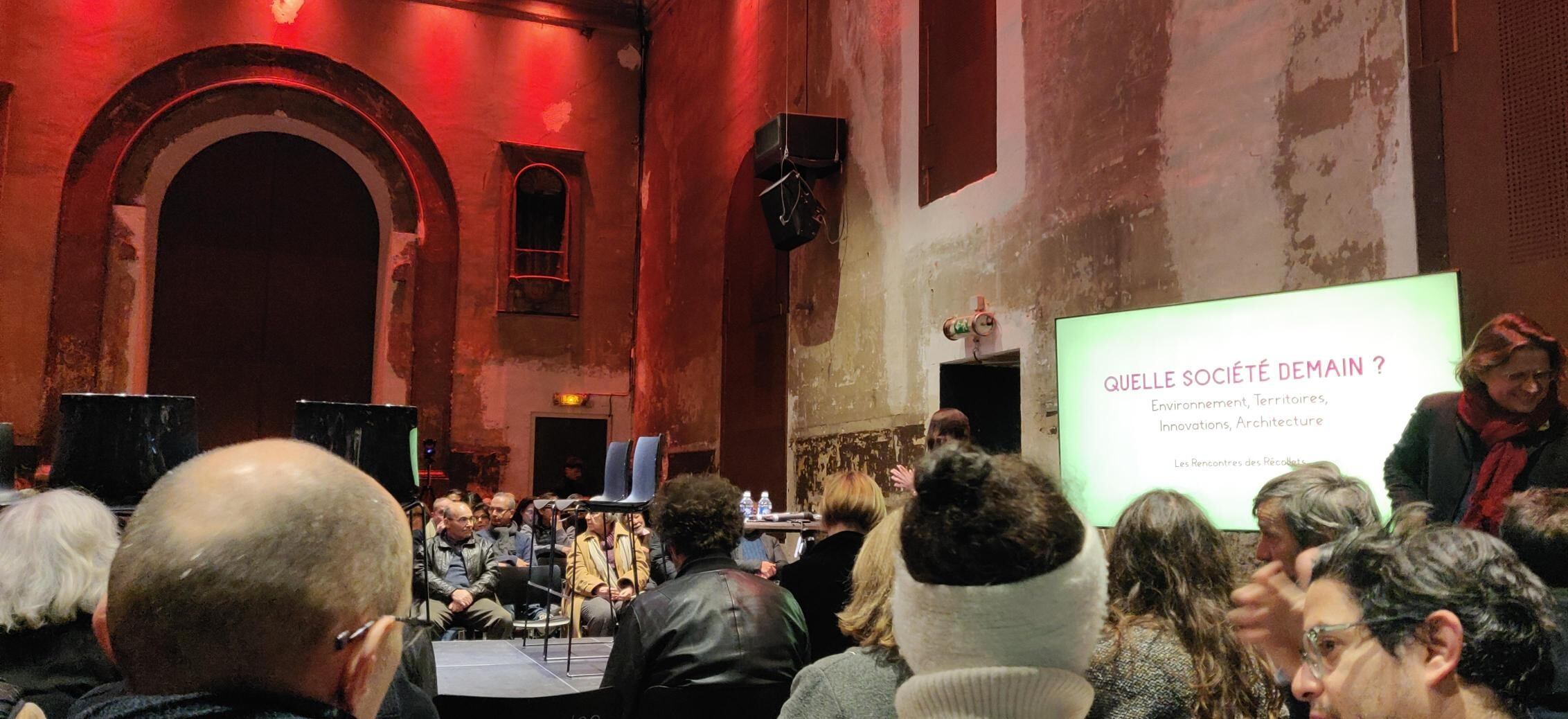 Aux Couvent des Récollets, mardi 9/01 se tenait le débat “Quelle Société demain ?” organisé par le CROAIF dans la continuité des “Journées du Territoires”. Le débat sur l’avenir de notre société et de nos territoires s’est fait avec : Émeline Bailly, docteure en urbanisme, chercheuse (CSTB), Fabienne Goux-Baudiment, directrice de ProGective, Alexandre Cadain, cofondateur de World Game & Worklib, Cyril Dion, écrivain, réalisateur, poète, militant écologique. Et deux grands-témoins : Catherine Jacquot, architecte urbaniste, architecte-conseil de l'État (ACE), Jean-Michel Daquin, architecte. Le débat était modéré par Elé Asu.